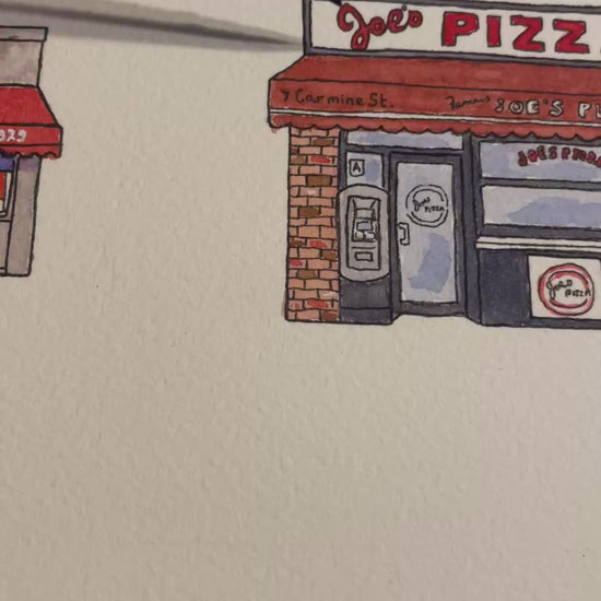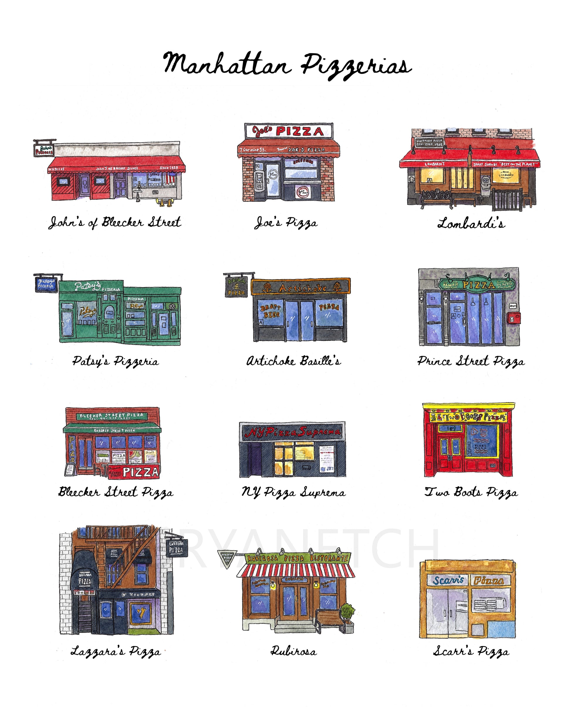 12 Manhattan Pizzeria Storefronts - 11x14" Watercolor Art Print by Bryan Etch